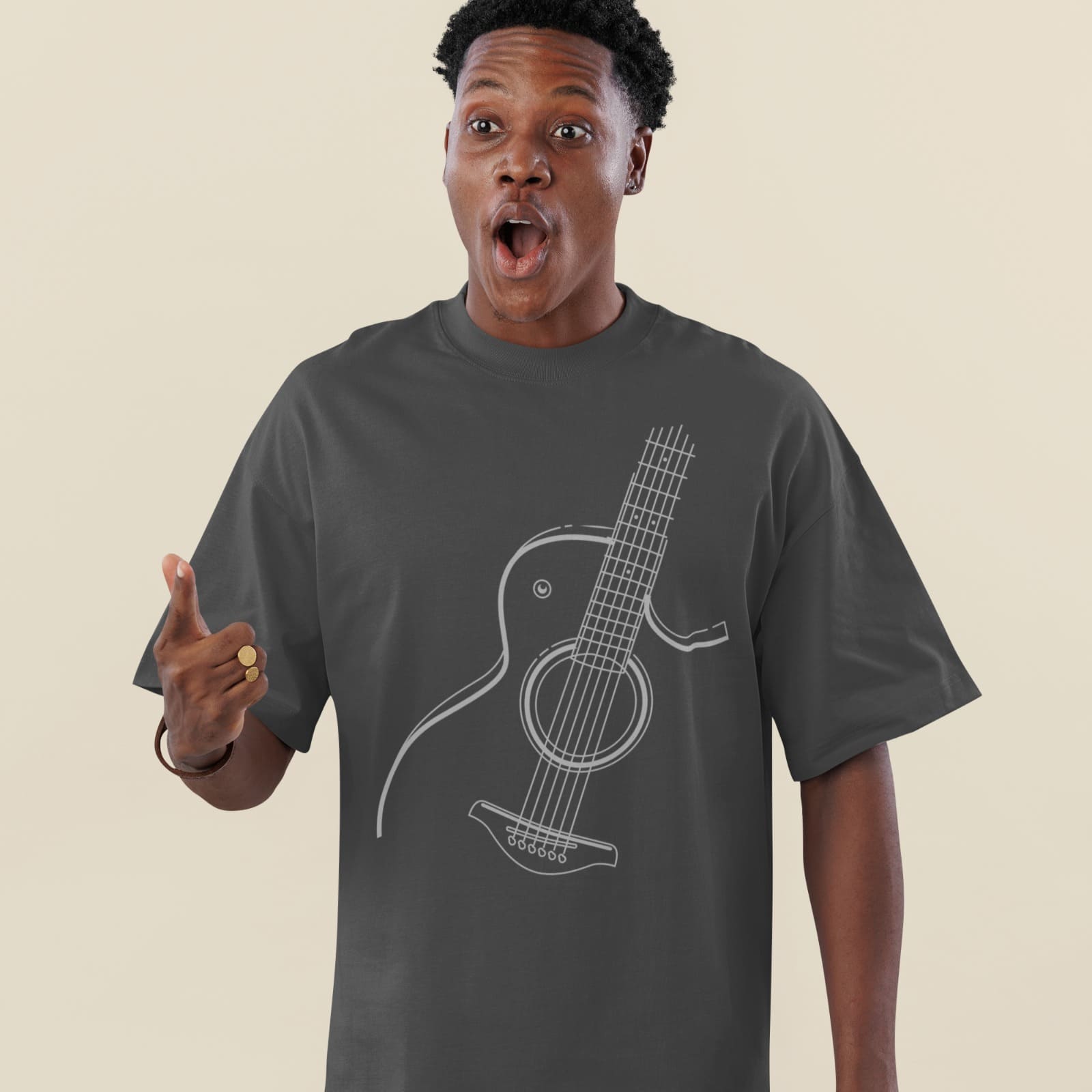 Discover the pure beauty of music with this elegant acoustic guitar outline design! Simple yet striking, it's perfect for guitar players, songwriters, and every music lover who appreciates the timeless charm and soulful sound of a classic acoustic instrument. Wear your passion for melodies!