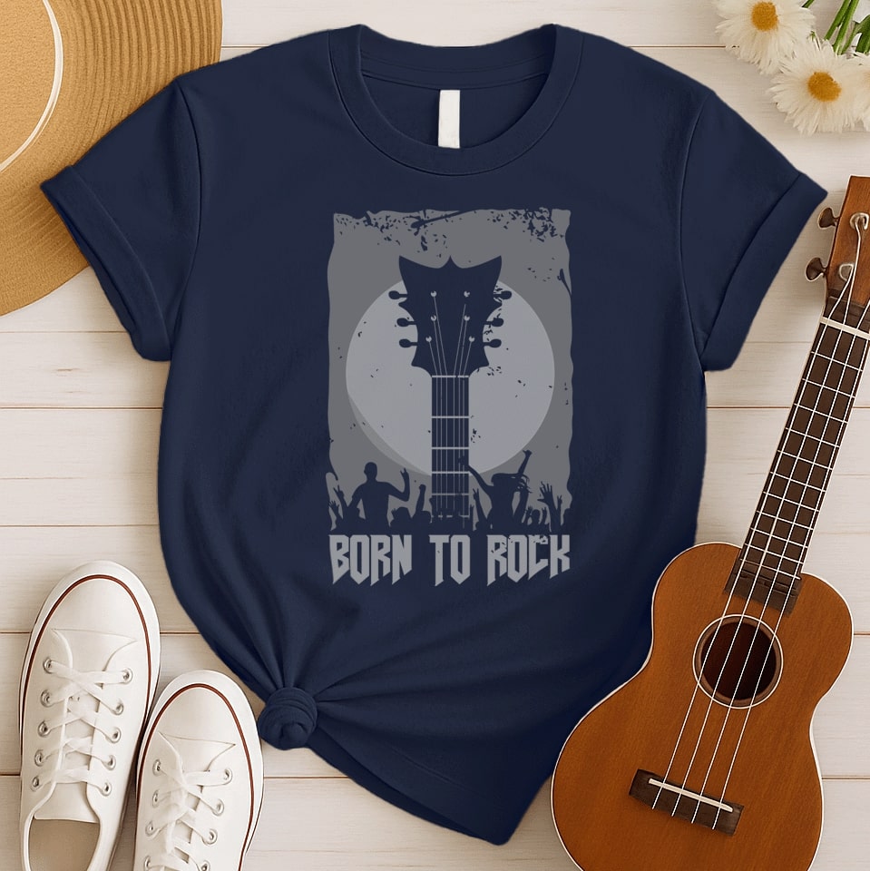 For those truly "Born to Rock," this design is your anthem! It captures the electrifying energy of a live concert, with an iconic electric guitar headstock rising above a roaring crowd. Wear your rock and roll spirit and feel the raw power of music pulsating through you.