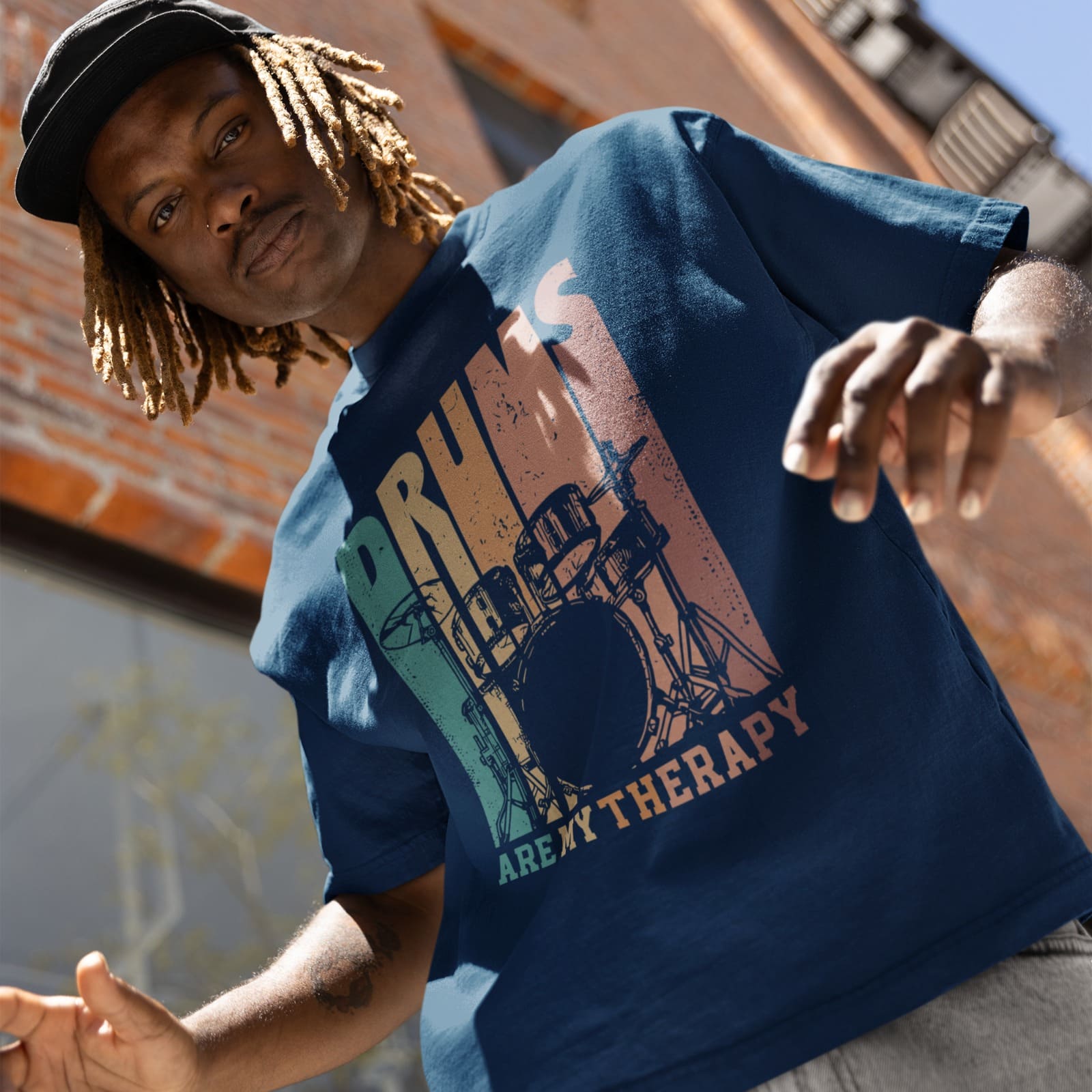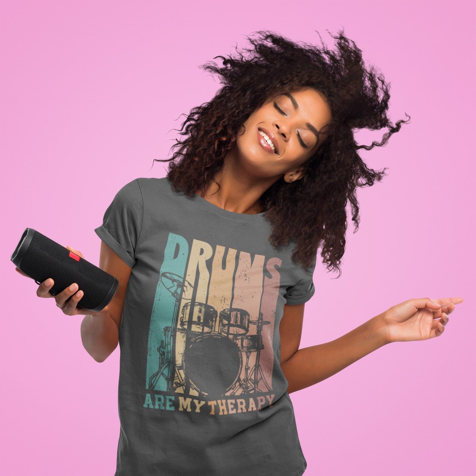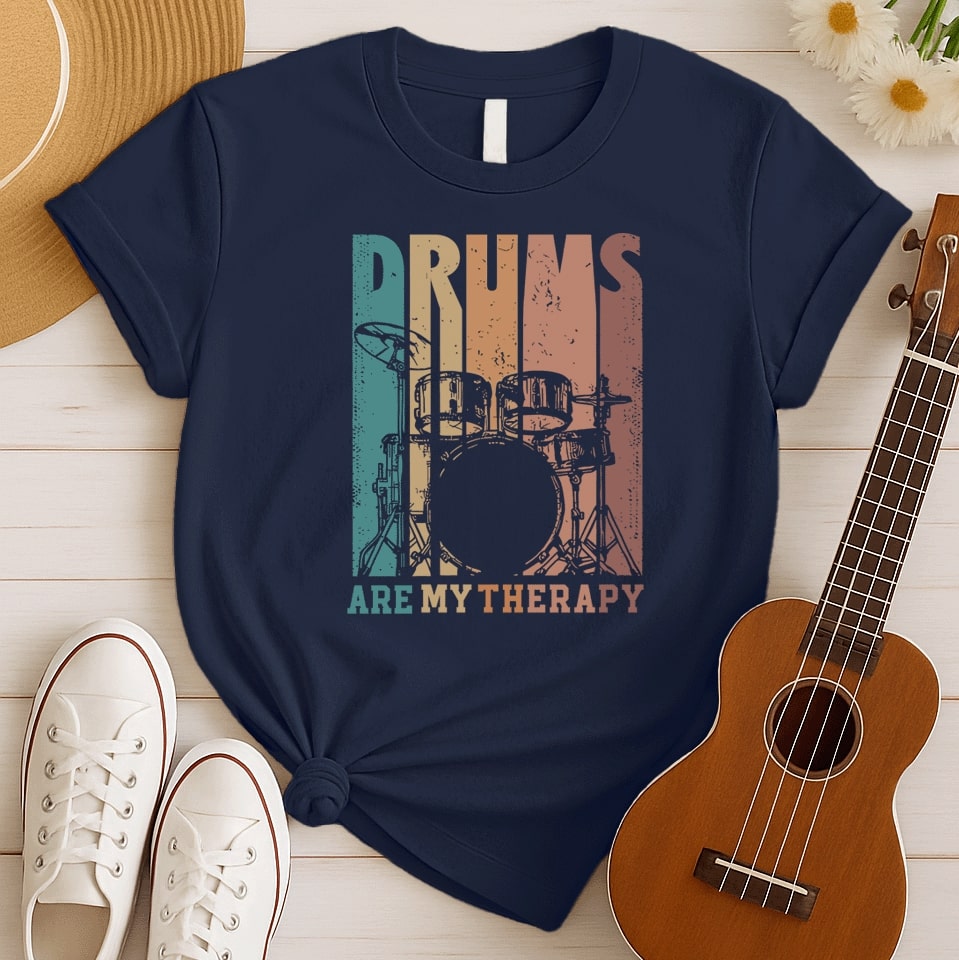 Feel the beat and find your peace! This "DRUMS ARE MY THERAPY" design features a stylized drum set in cool, retro colors. It's the ultimate statement for every passionate drummer and music lover who knows the profound healing power of rhythm and percussion. Wear your passion!