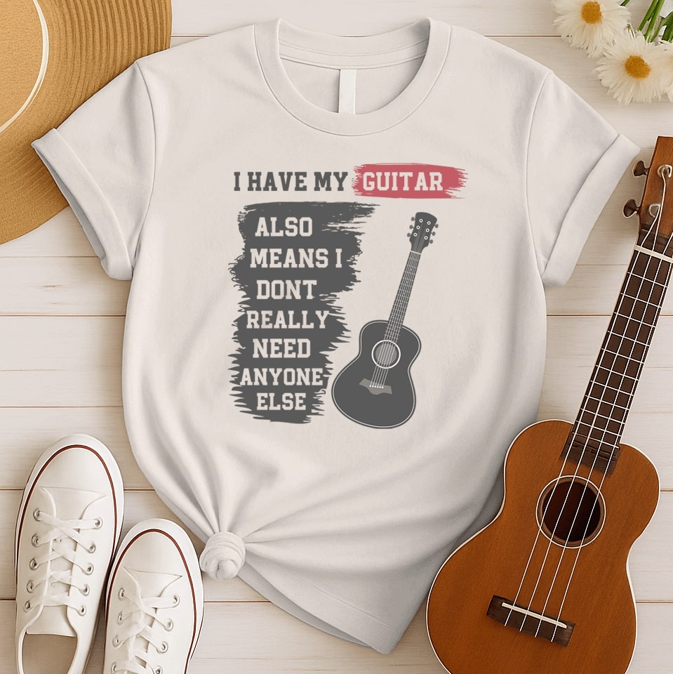 When you have your guitar, you "DONT REALLY NEED ANYONE ELSE"! This design celebrates the ultimate bond between a musician and their instrument. Featuring a sleek acoustic guitar and bold text, it's the perfect statement for every guitarist and music lover who finds everything they need in a six-string serenade.
