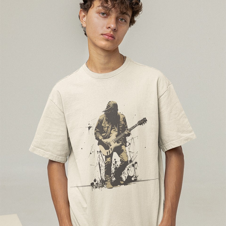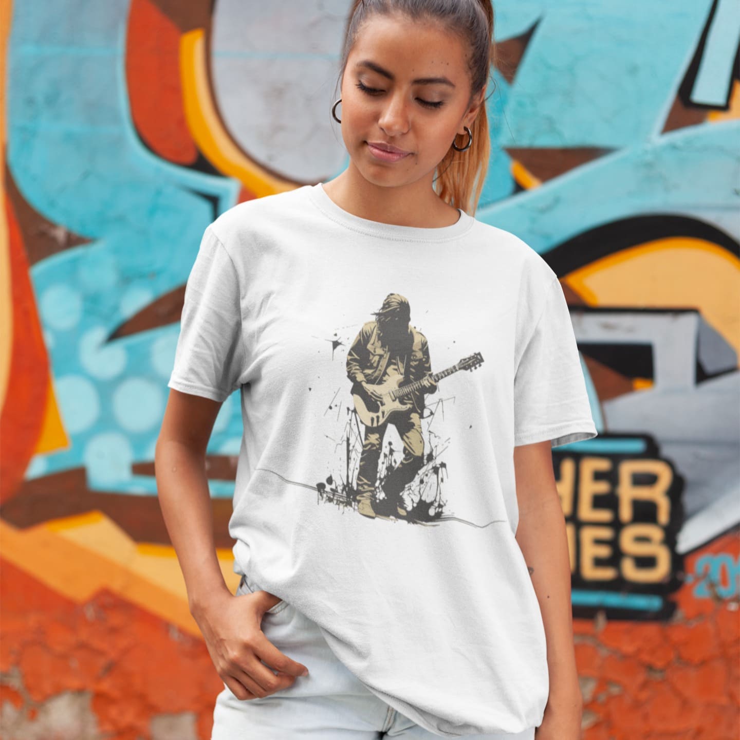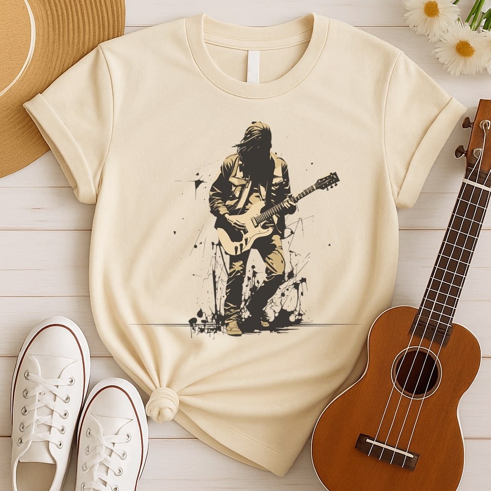 Feel the electrifying energy of live music with this iconic design, showcasing a powerful guitarist silhouette in a dynamic rock concert pose. It’s a profound tribute to the rockstar spirit and raw electric guitar power, perfect for music fans who live for the rock and roll anthem.