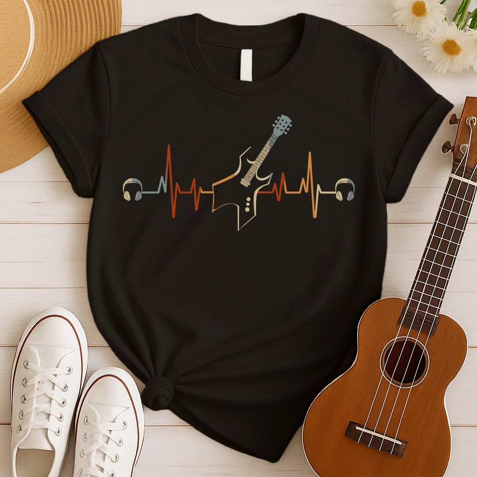 Retro Guitar Heartbeat | Music Fan Tshirt