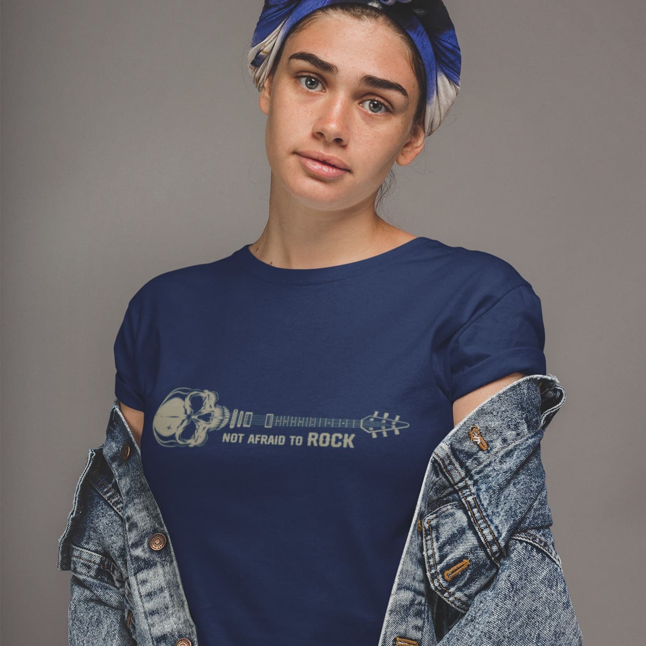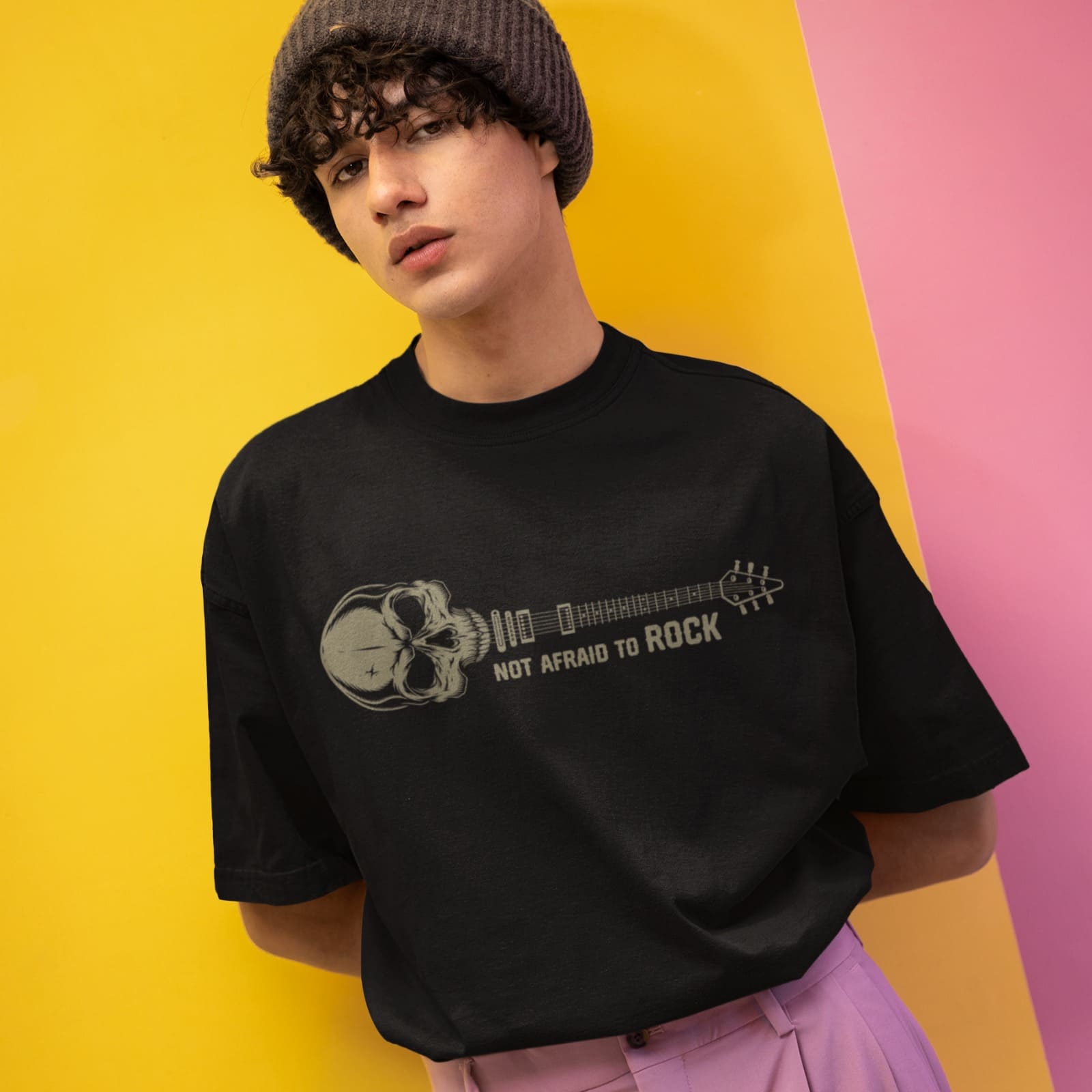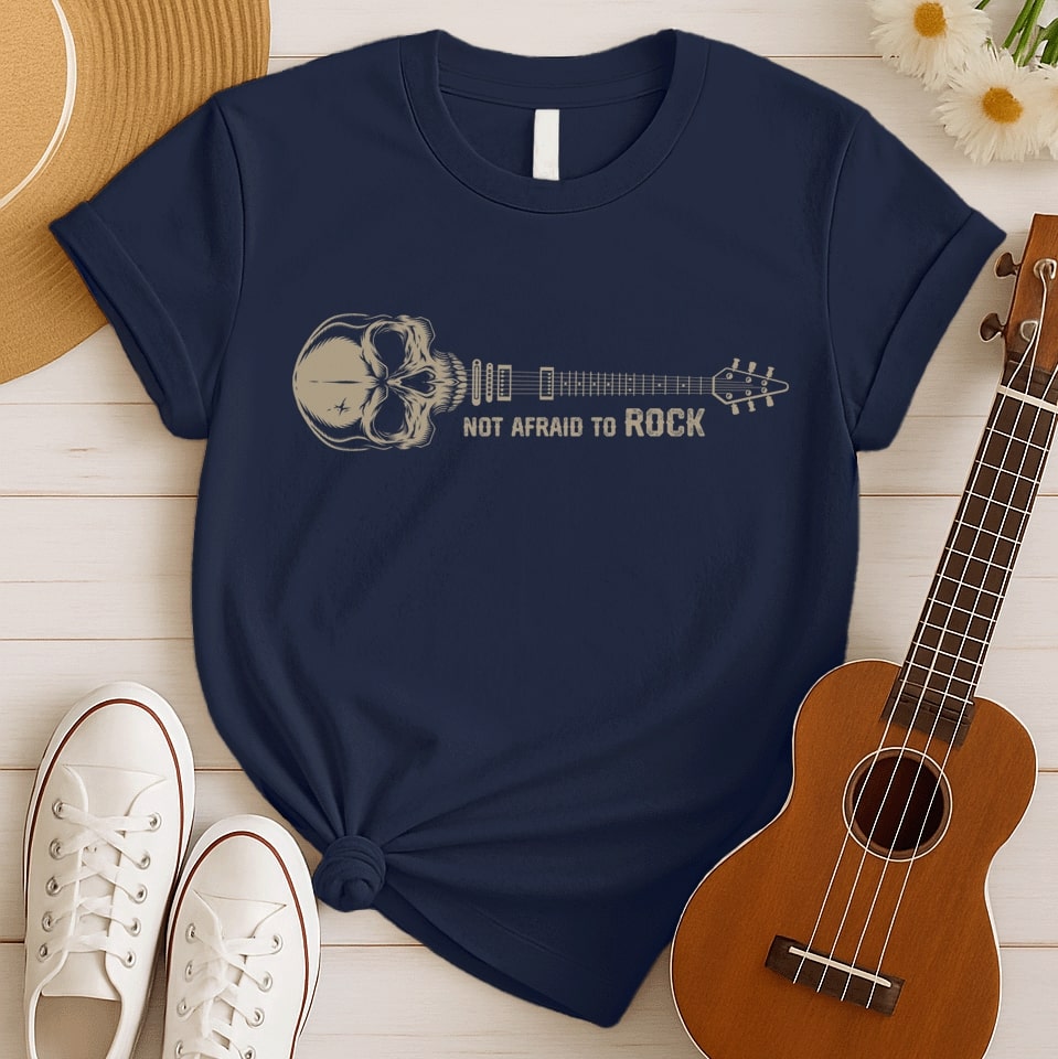 Embrace your inner Rock Metal Rebel! This intense design fuses a powerful skull with an electric guitar, declaring you're "NOT AFRAID TO ROCK". It's the perfect statement for any guitar fan who lives and breathes the heavy metal attitude.
