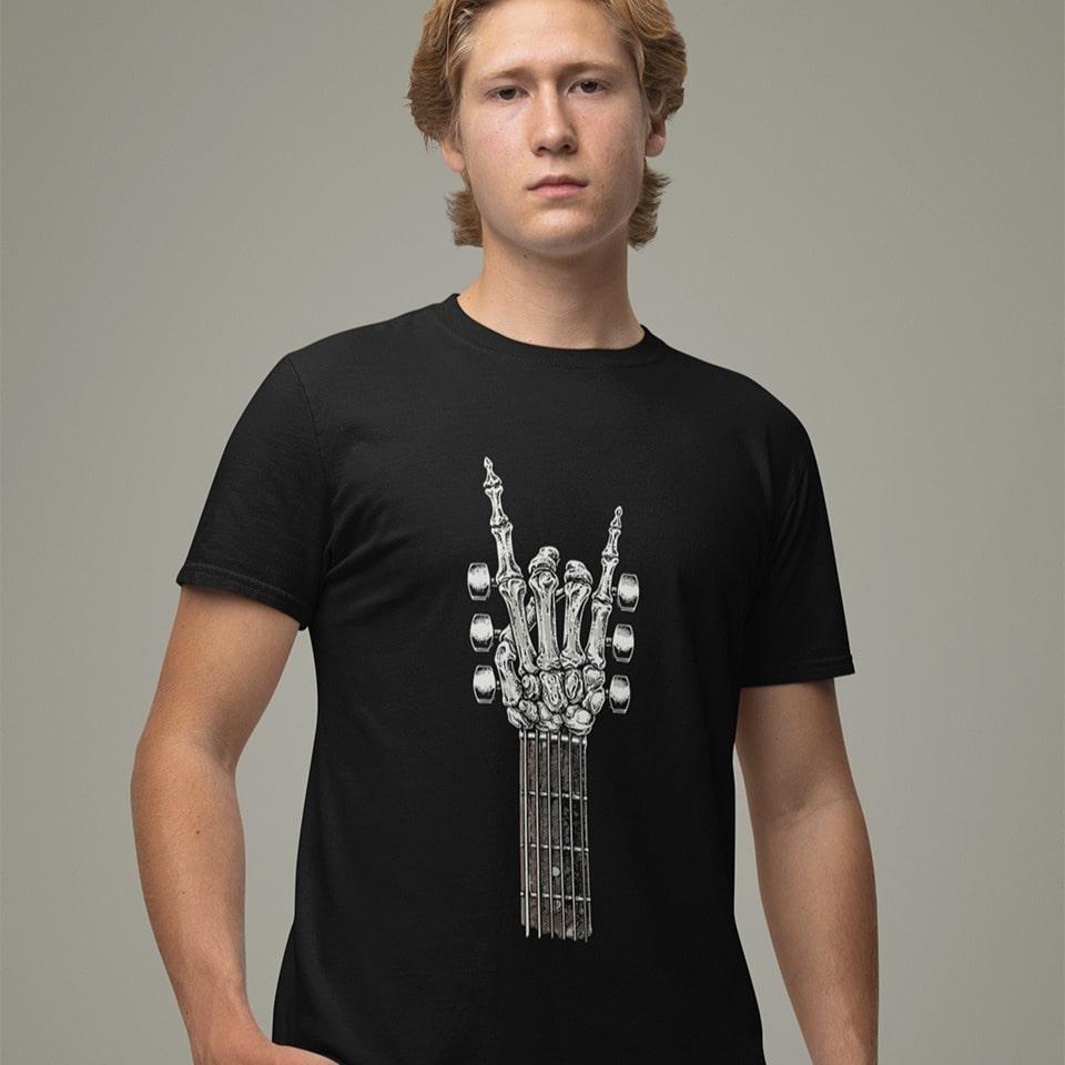 Rock On Skeleton | Guitar Hand Tshirt