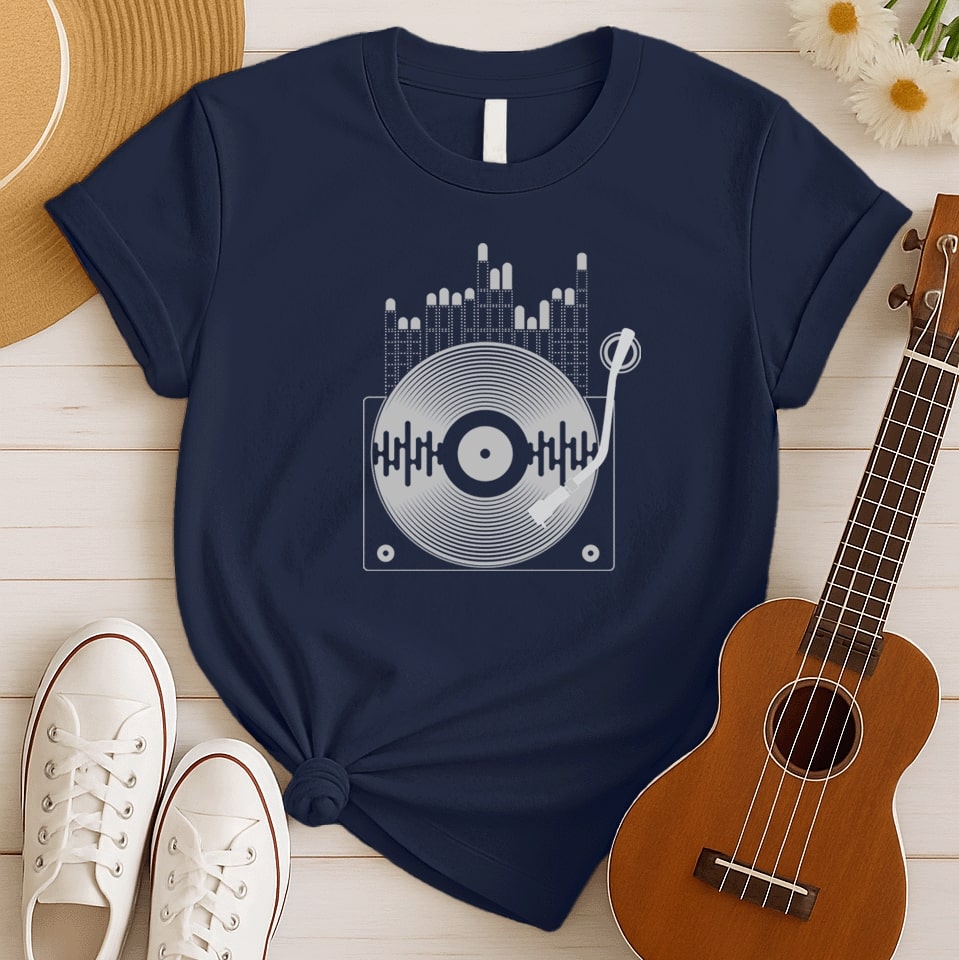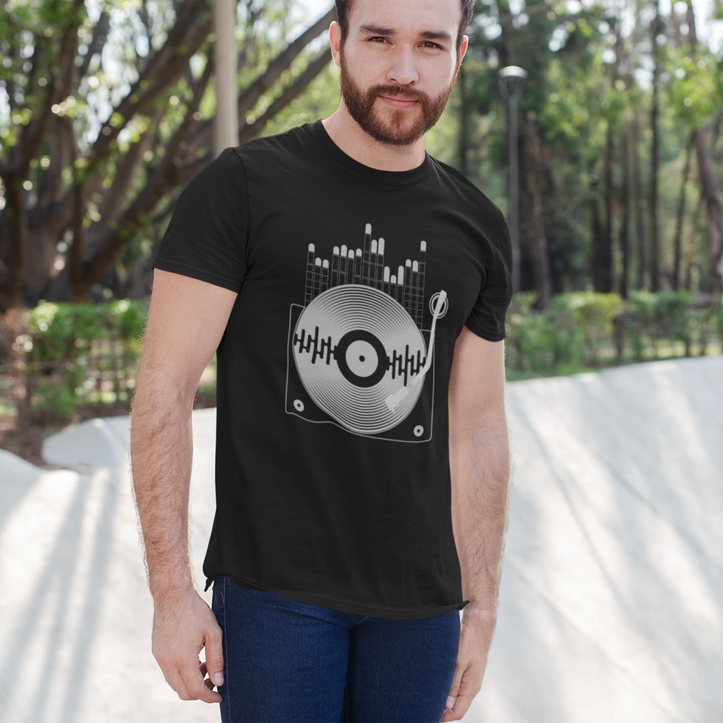 Bold design featuring turntable vibes and equalizer waves. A must-have for DJs and beatmakers. Express your passion for analog sound and visual groove.